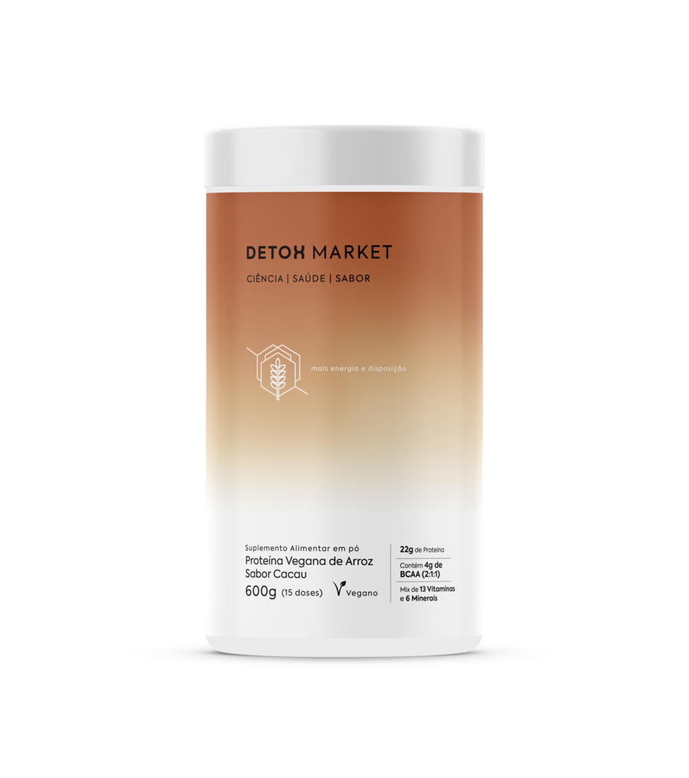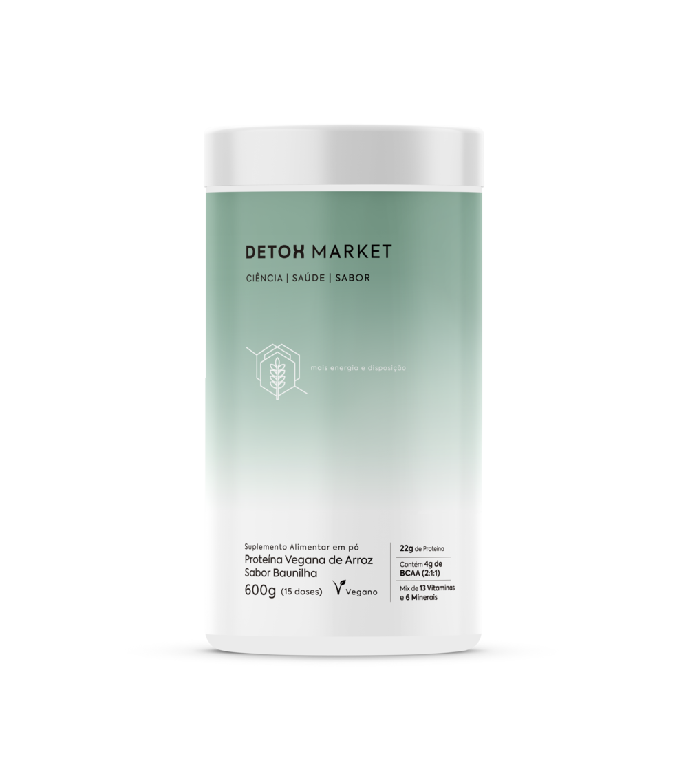 A Proteína Vegana de Arroz da Detox Market (600g por pote) é um suplemento alimentar hipoalergênico, composto por proteína isolada de arroz com certificação orgânica internacional, possui cremosidade perfeita!