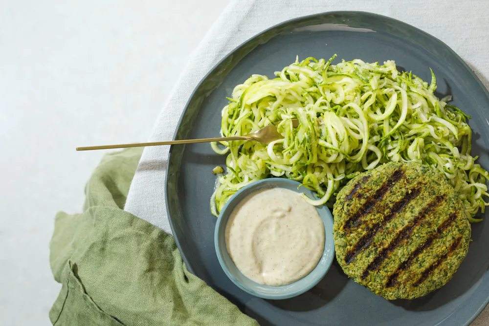 Hambúrguer de 180g com grão de bico, salsinha e couve flor, páprica defumada, zaatar e recheado com purê de mandioquinha. Congelado e próprio para microondas ou aquecer airfryer (Vegano – 180g). Validade 90 dias no freezer e 3 dias na geladeira. Sem glúten e sem leite.