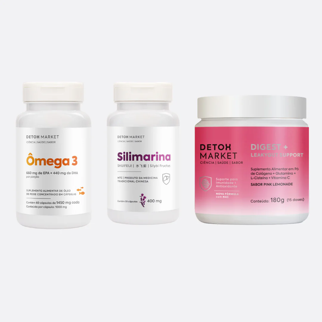 Kit imunidade completo para o seu dia composto por: 1 Ômega 3 concentrado, rico em ácidos graxos de cadeia longa com 660mg de EPA + 440mg de DHA + 1 Silimarina ideal para potencializar o seu fígado + 1 Digest+ para recuperar a saúde intestinal e acabar com o estufamento. Se você esta inflamado e/ou busca um emagrecimento saudável este kit contribui para melhora do seu metabolismo como um todo.