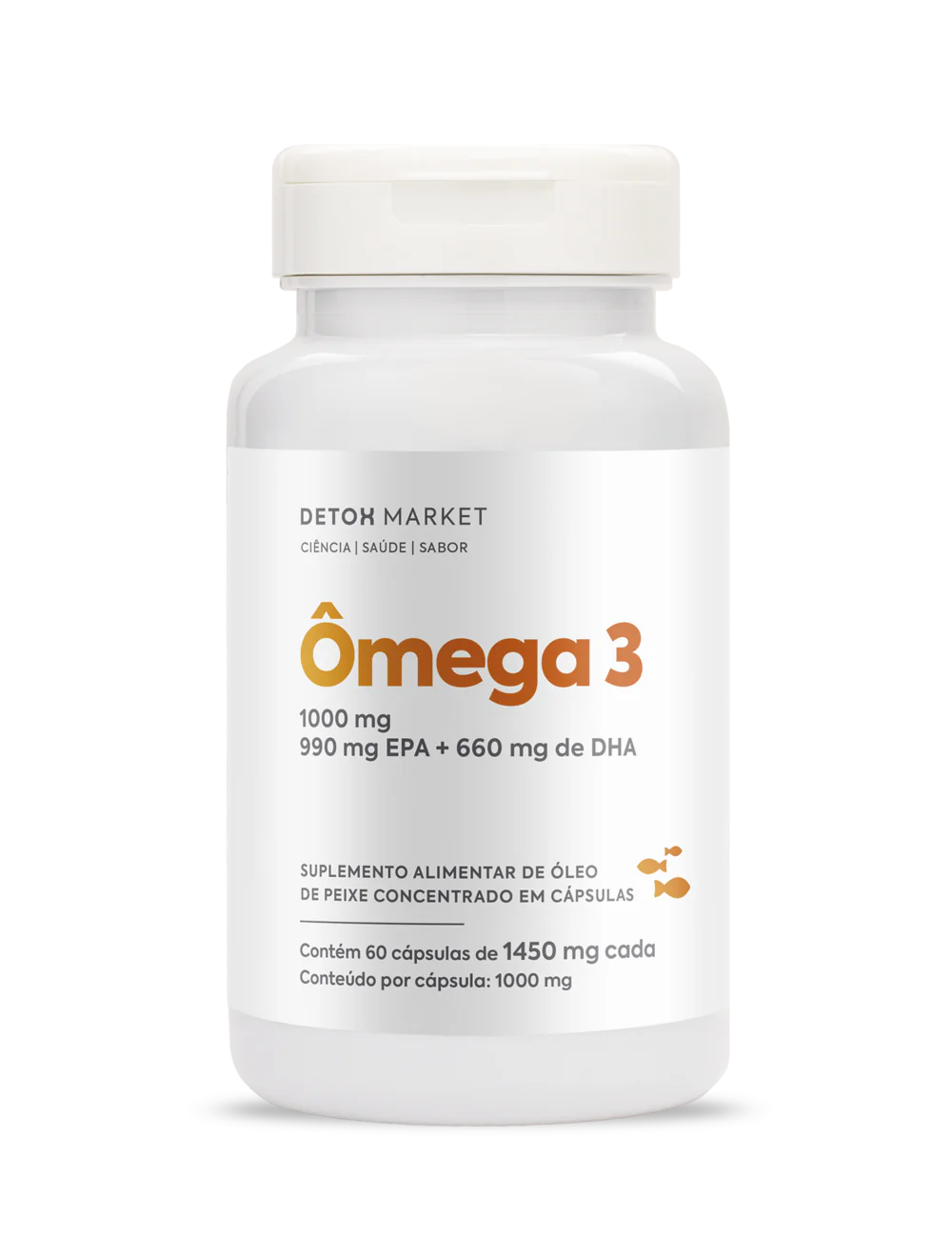 O Ômega 3 da Detox Market é um suplemento a base de óleo de peixe extraído de águas frias e profundas, rico em ácidos graxos de cadeia longa com 660mg de EPA + 440mg de DHA por porção (2 cápsulas). Contém: 60 cápsulas para 30 dias.